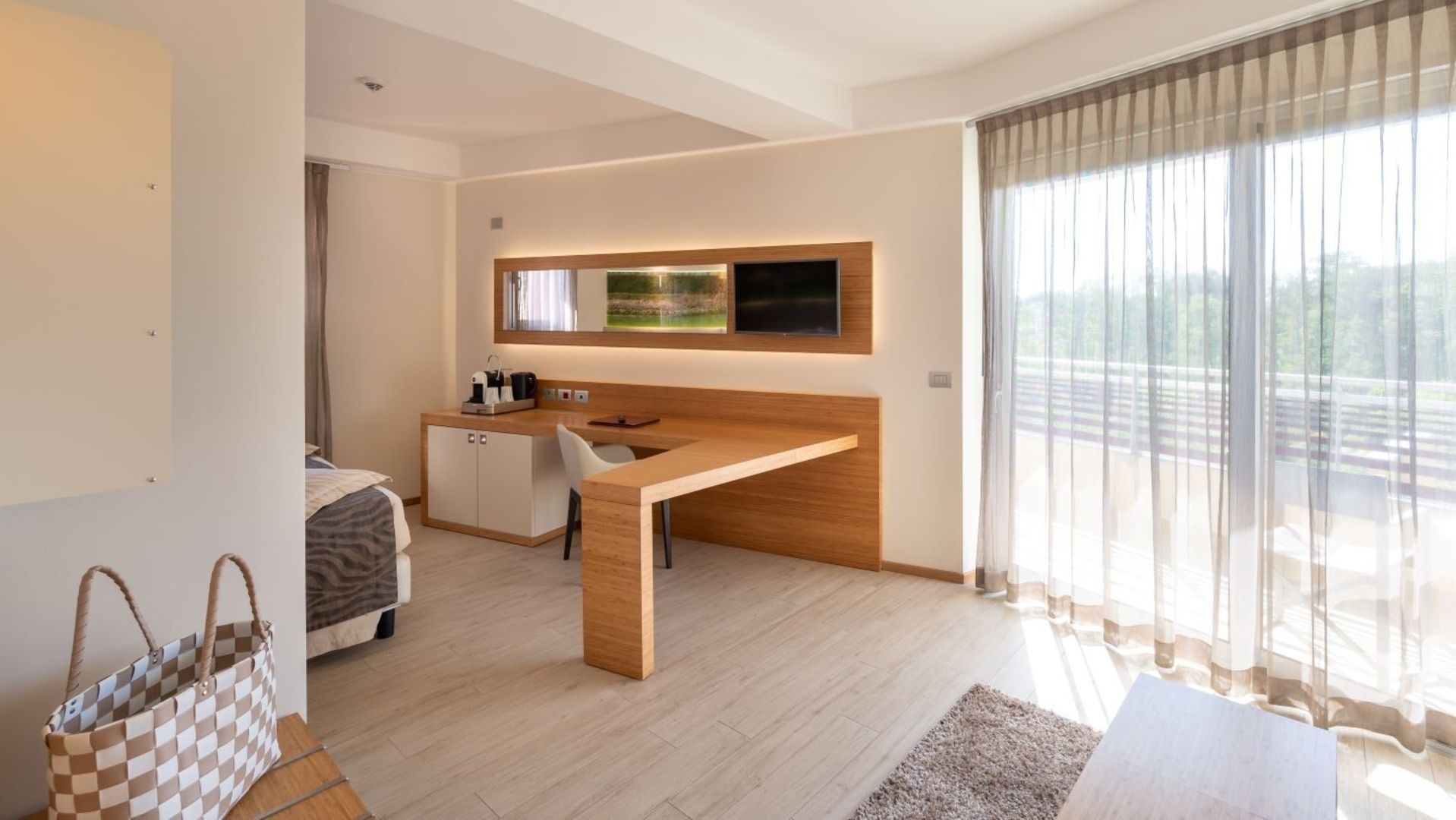 - Moderni arredi in bambù Made in Italy e pavimento in gres effetto legno