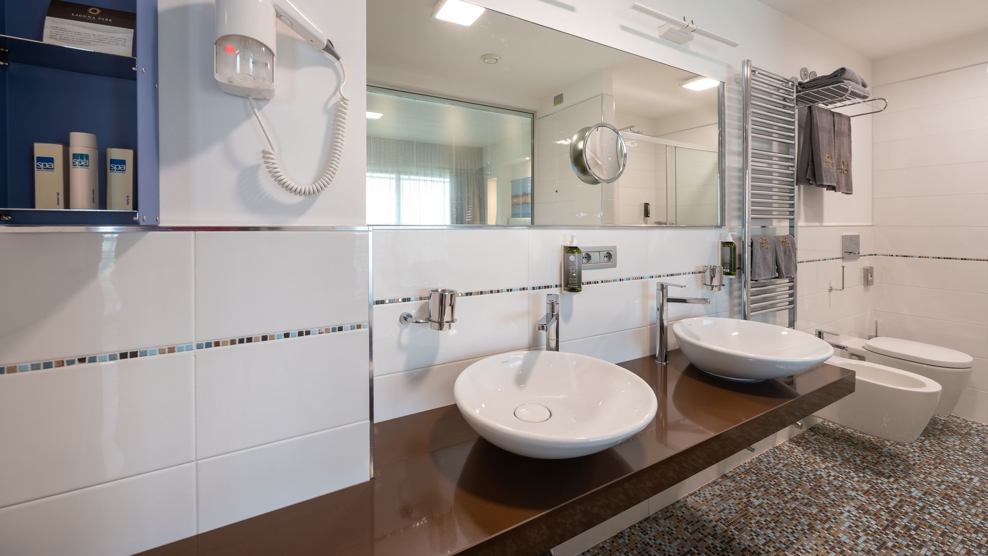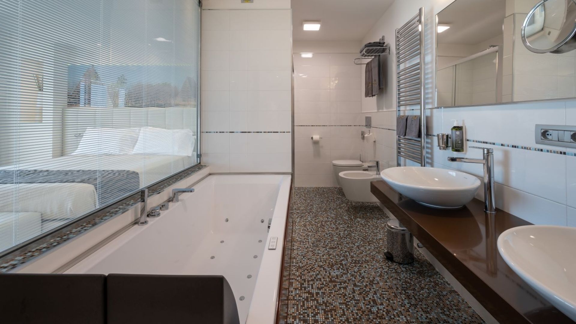 - Bagno Luxury con vasca idromassaggio e doccia matrimoniale, Courtesy Set Bibione Thermae