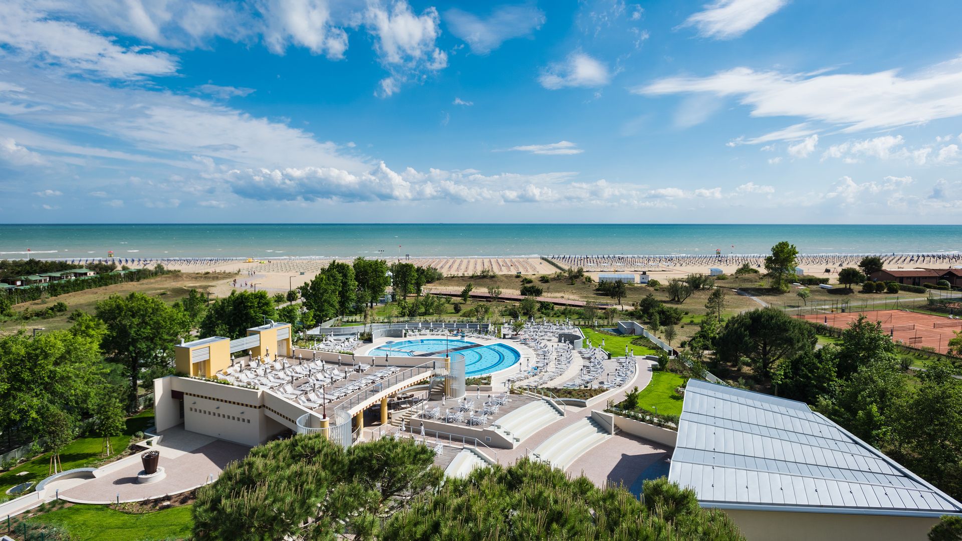 - Bagno panoramico con vasca idromassaggio vista mare e box doccia, Courtesy Set Bibione Thermae