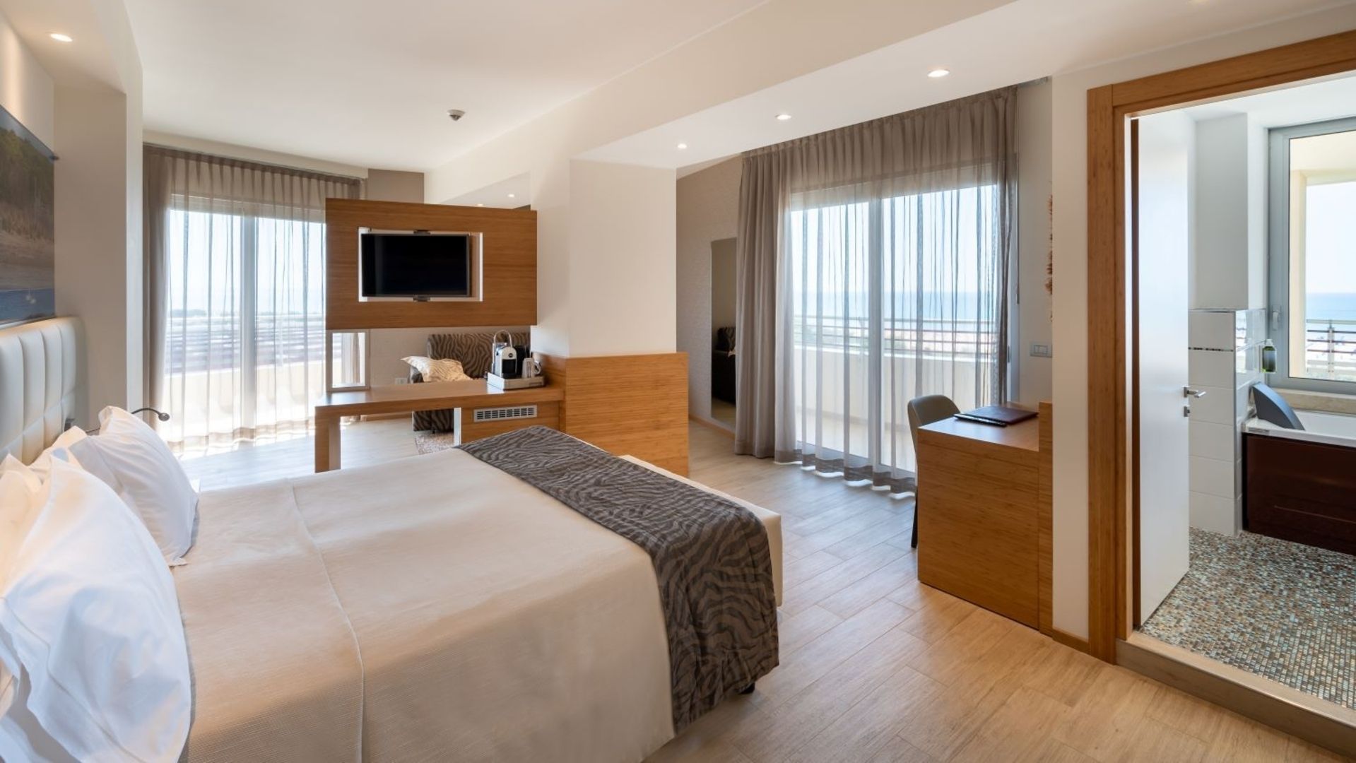 la vostra camera MARE, con il suo esclusivo bagno con idromassaggio e vista sull’Adriatico e la sua terrazza solarium privata fronte mare vi farà trascorrere momenti di ineguagliabile intimità.