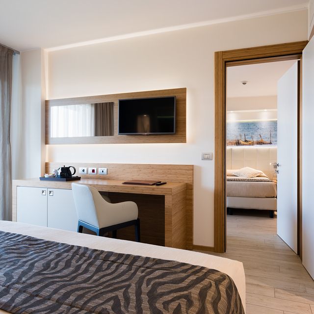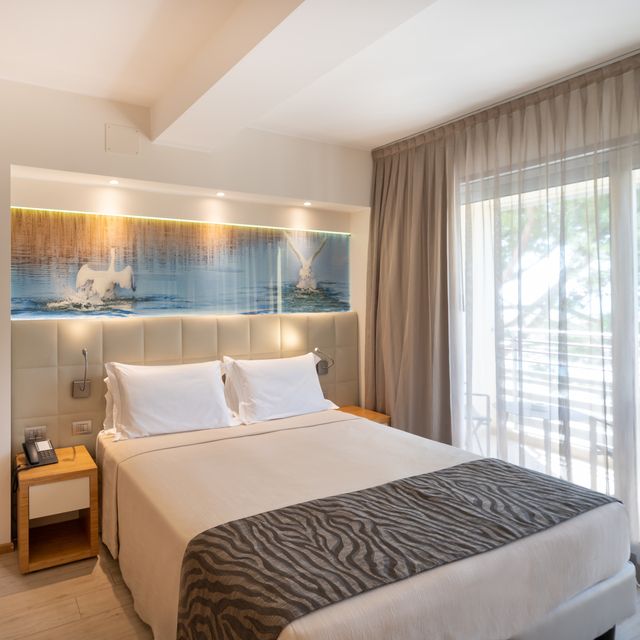 la camera PANORAMA, situata dal 2° al 5° piano, con il suo ampio terrazzo fronte mare vi farà trascorrere momenti indimenticabili avvolti dalla brezza marina.
